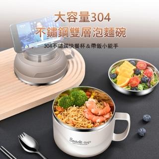 Kyhome 304不鏽鋼雙層泡麵碗 便當盒 餐盒 湯碗 飯盒(1850ml)