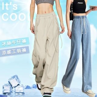 預購 MsMore 高腰鬆緊雙系帶運動褲寬鬆香蕉褲顯瘦闊腿褲爵士跳舞長褲#119249(9款任選)