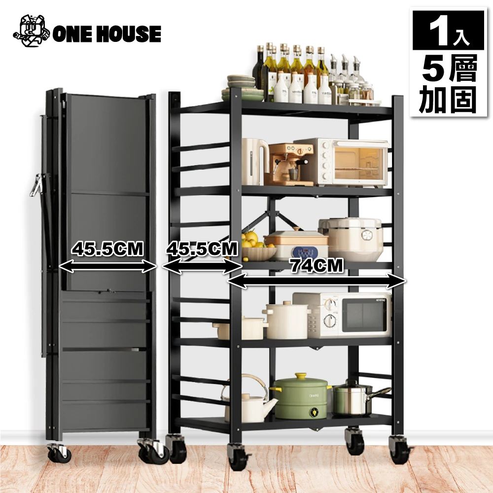 ONE HOUSE 五層70寬加深_全碳鋼 洛克免組裝折疊置物架-特大款(廚房架/層架/收納架/鐵架/電器架)