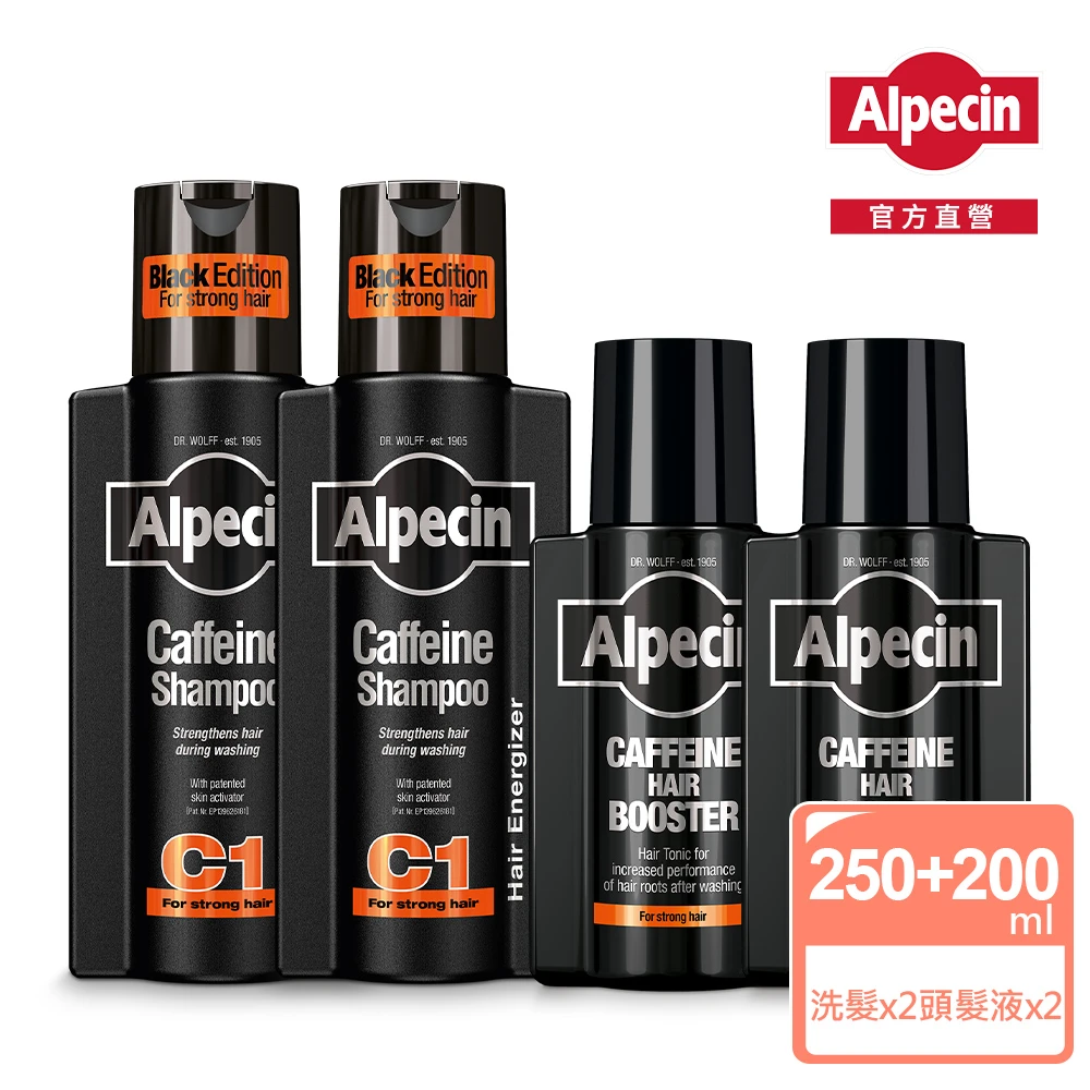 Alpecin官方直營 Black C1咖啡因洗髮露黑色經典款250mlx2+咖啡因髮根強健精華液200mlx2