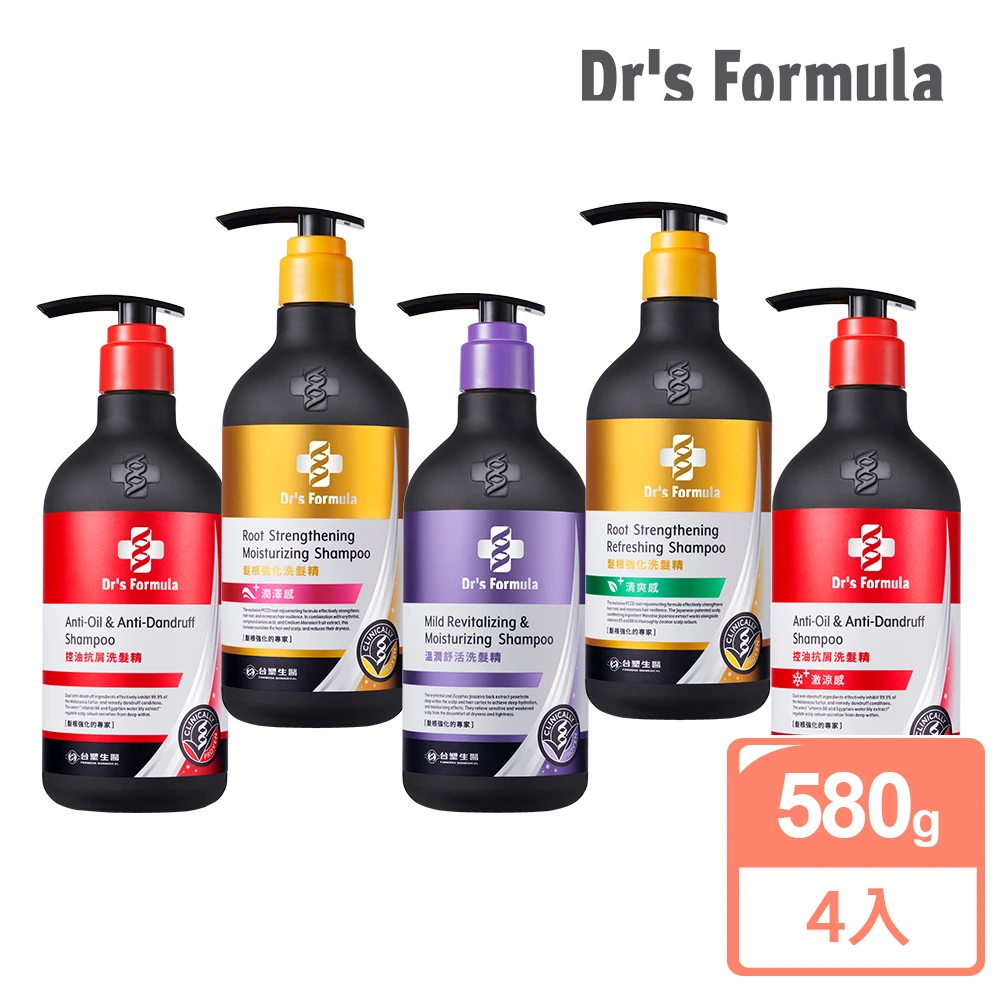 Dr’s Formula 台塑生醫 三代洗髮精580gx4入(控油抗屑/髮根清爽/溫潤舒活/髮根潤澤/控油激涼)
