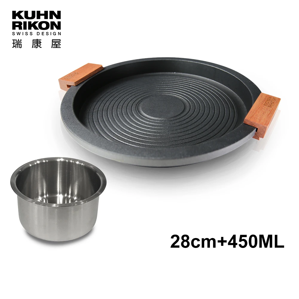 瑞康屋Kuhn Rikon 節能板多工煎烤盤28cm+可導磁小鋼杯450ML(超越烤盤 功能多變)