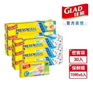 GLAD佳能 官方直營 Press N Seal神奇密實保鮮膜 防漏保鮮膜(30公分x21.7公尺x6入+密實袋30入)