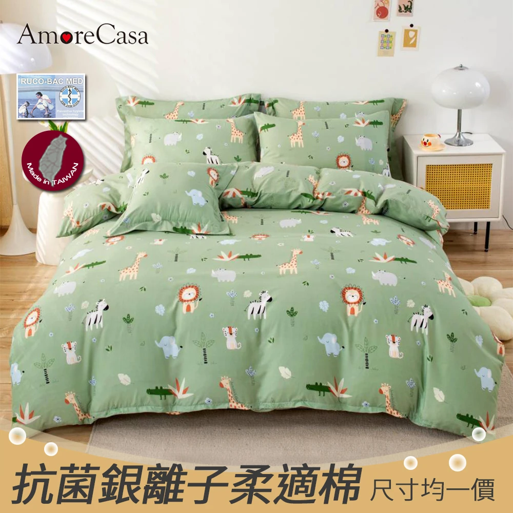 AmoreCasa 台灣製造抗菌銀離子柔適棉被套床包組(單人/雙人/加大 均一價/多款任選/四件組/親膚舒適)