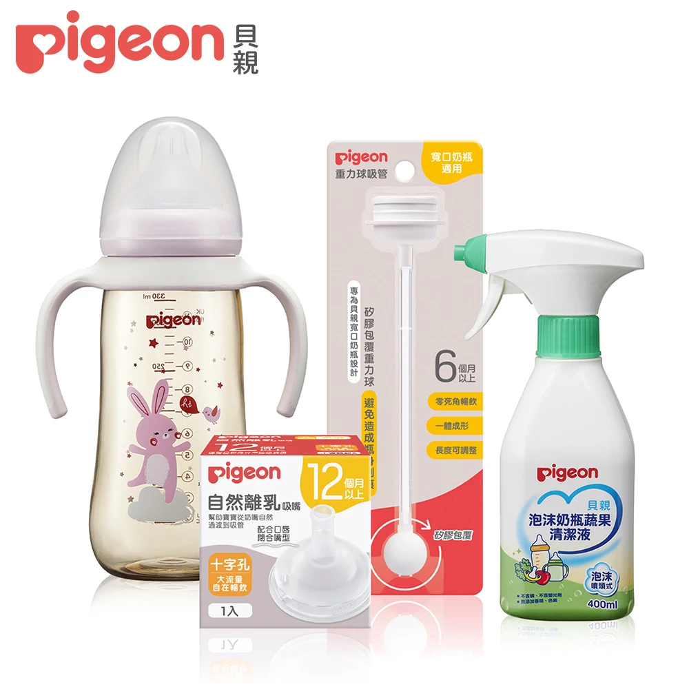 Pigeon貝親 官方直營 兔寶離乳升級組(奶瓶/奶瓶清潔/momo獨家組)
