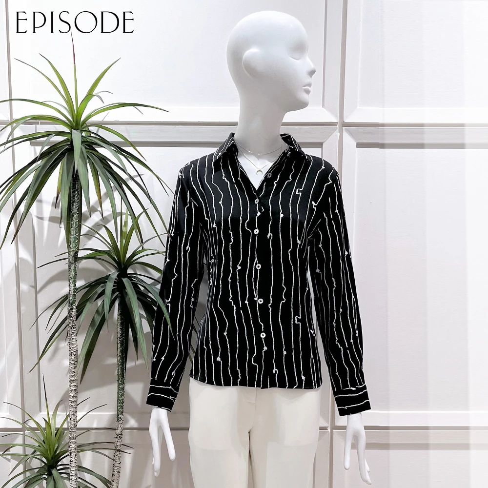 EPISODE 經典百搭抽象條紋長袖襯衫E30482(黑)
