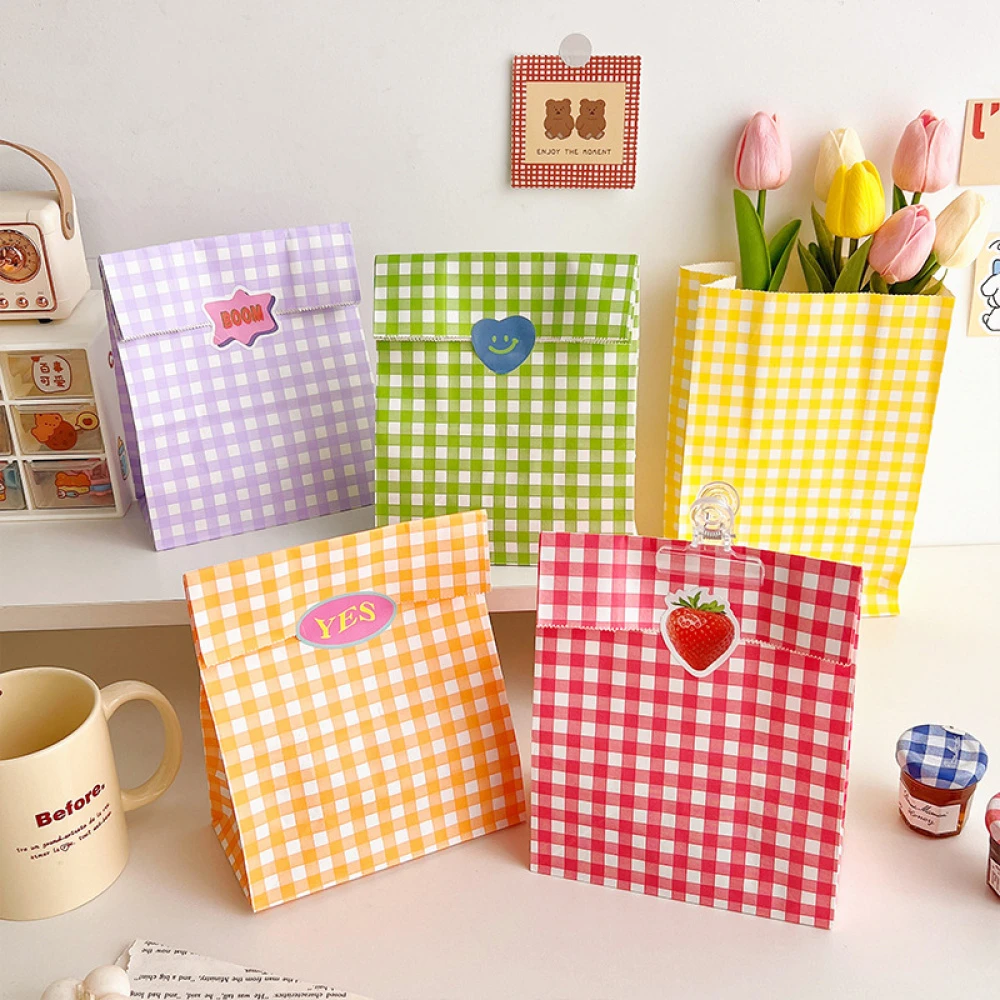 INS糖果色格子包裝牛皮紙袋-10入(包裝袋 西點袋 餅乾袋 點心袋 禮物袋 收納袋 購物袋 禮品袋子 婚禮)
