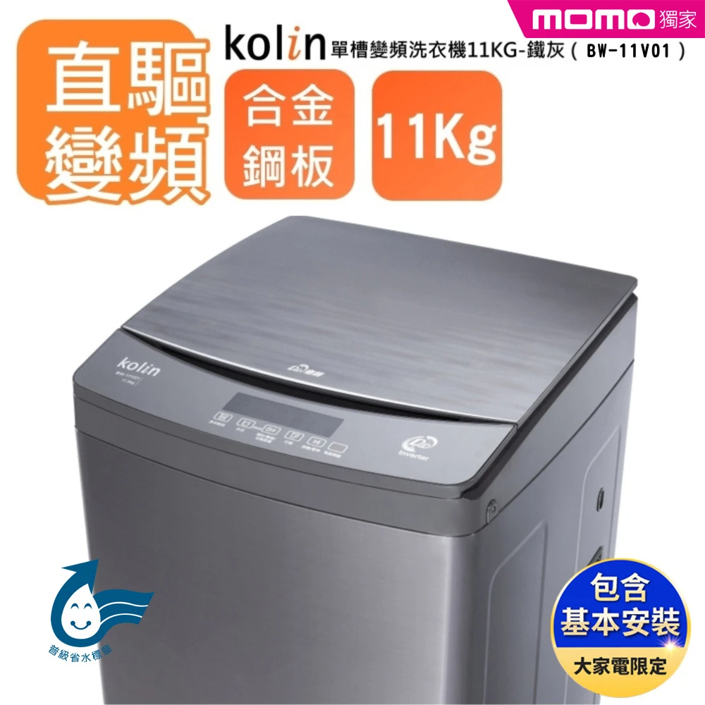 Kolin 歌林 58H快配momo獨家★11KG FUZZY全自動智慧控制 單槽變頻洗衣機-鐵灰BW-11V01M含基本運送安裝
