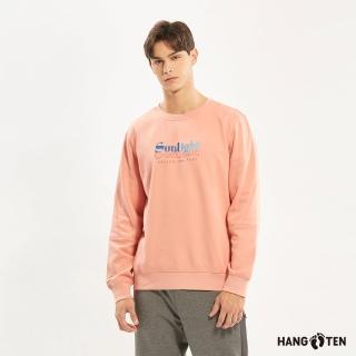 預購 Hang Ten 男裝- 袖口撞色剪接休閑大學T(橘粉)