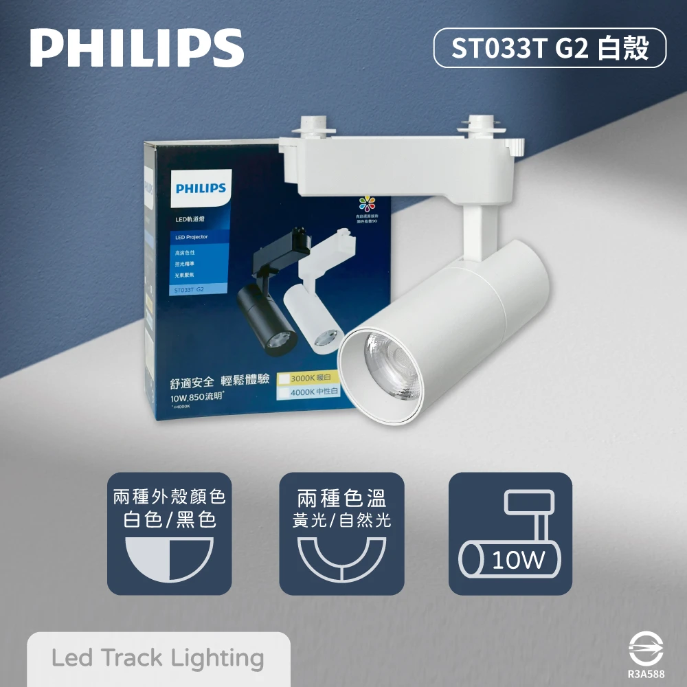 Philips 飛利浦 4入組 LED ST033T 10W 白殼 軌道燈 投射燈(2025年最新款)