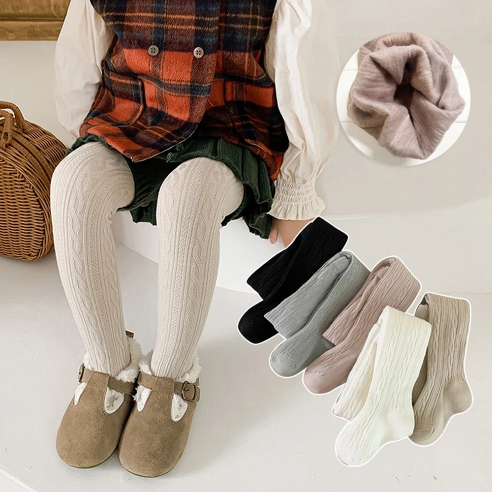 橘魔法 加絨純柔和色單直條褲襪(連褲襪 大童 褲襪 襪子 內搭褲 厚 刷毛 厚款 女童 兒童 童裝 保暖)