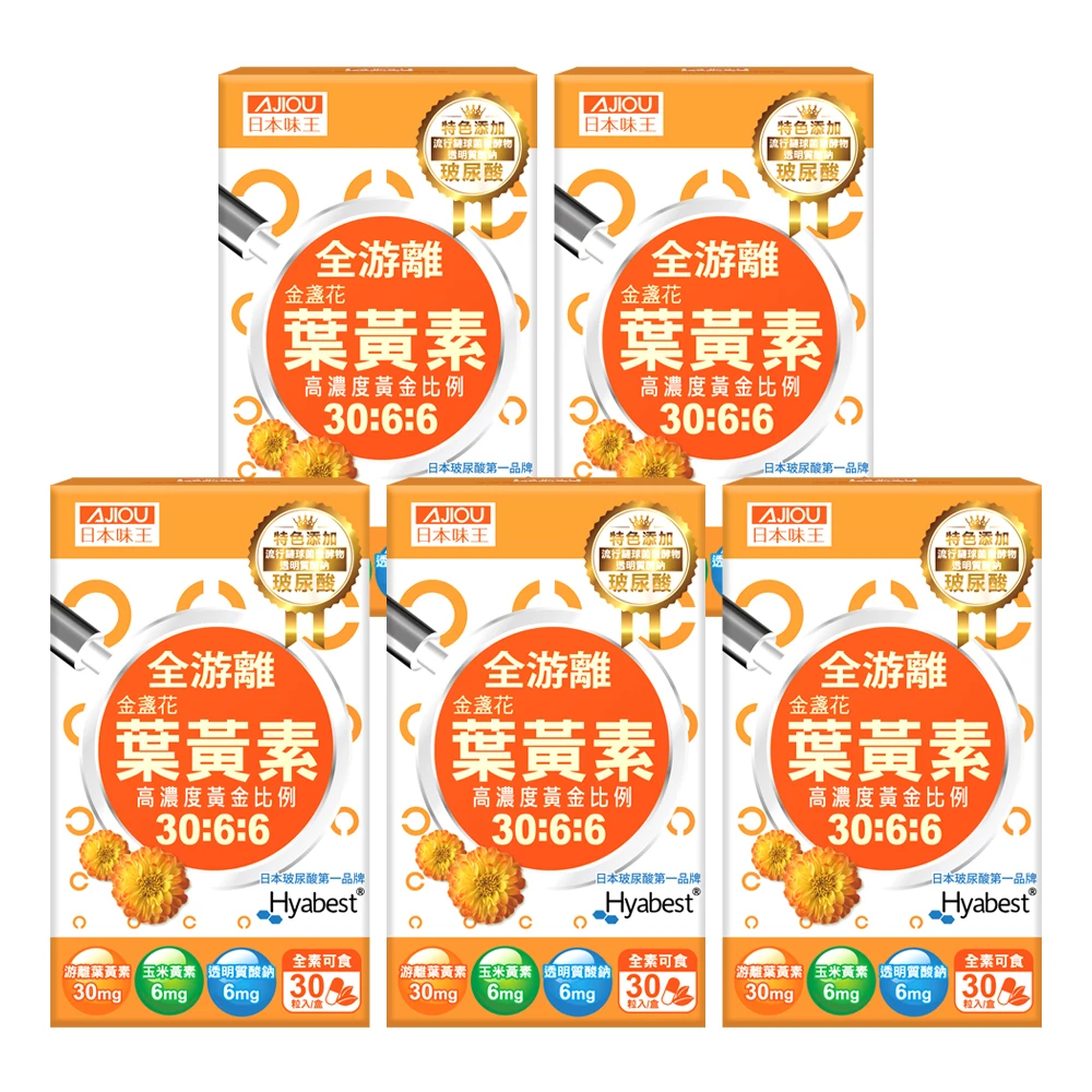 日本味王 【限定5折】30:6:6高濃度晶亮葉黃素30粒X5盒(游離型/玉米黃素/玻尿酸/全素)