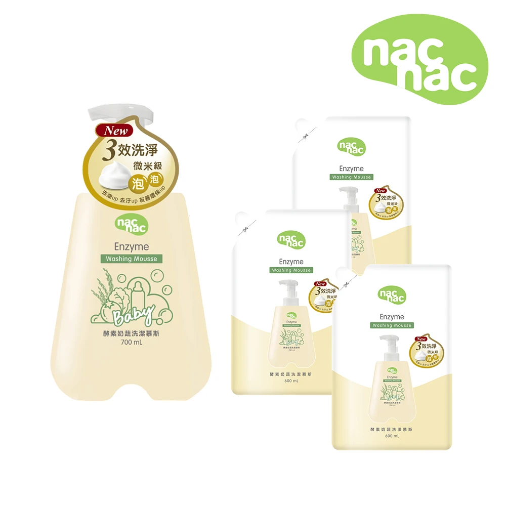 nac nac 酵素奶瓶蔬果洗潔劑1罐+3補充包(奶瓶玩具清潔/蔬果清潔)