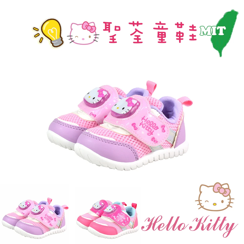 HELLO KITTY 12.5-17.5cm兒童鞋 電燈鞋 蝴蝶結輕量減壓抗菌防臭休閒運動鞋(紫&桃粉色)
