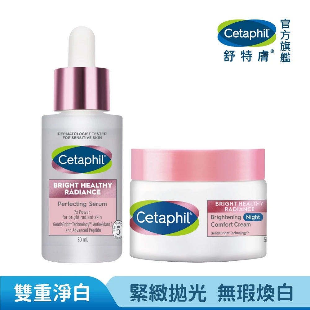 Cetaphil 舒特膚 官方直營 BHR淨白系列逆齡保濕組(無瑕精華液30ml+淨白調理安撫霜50g)