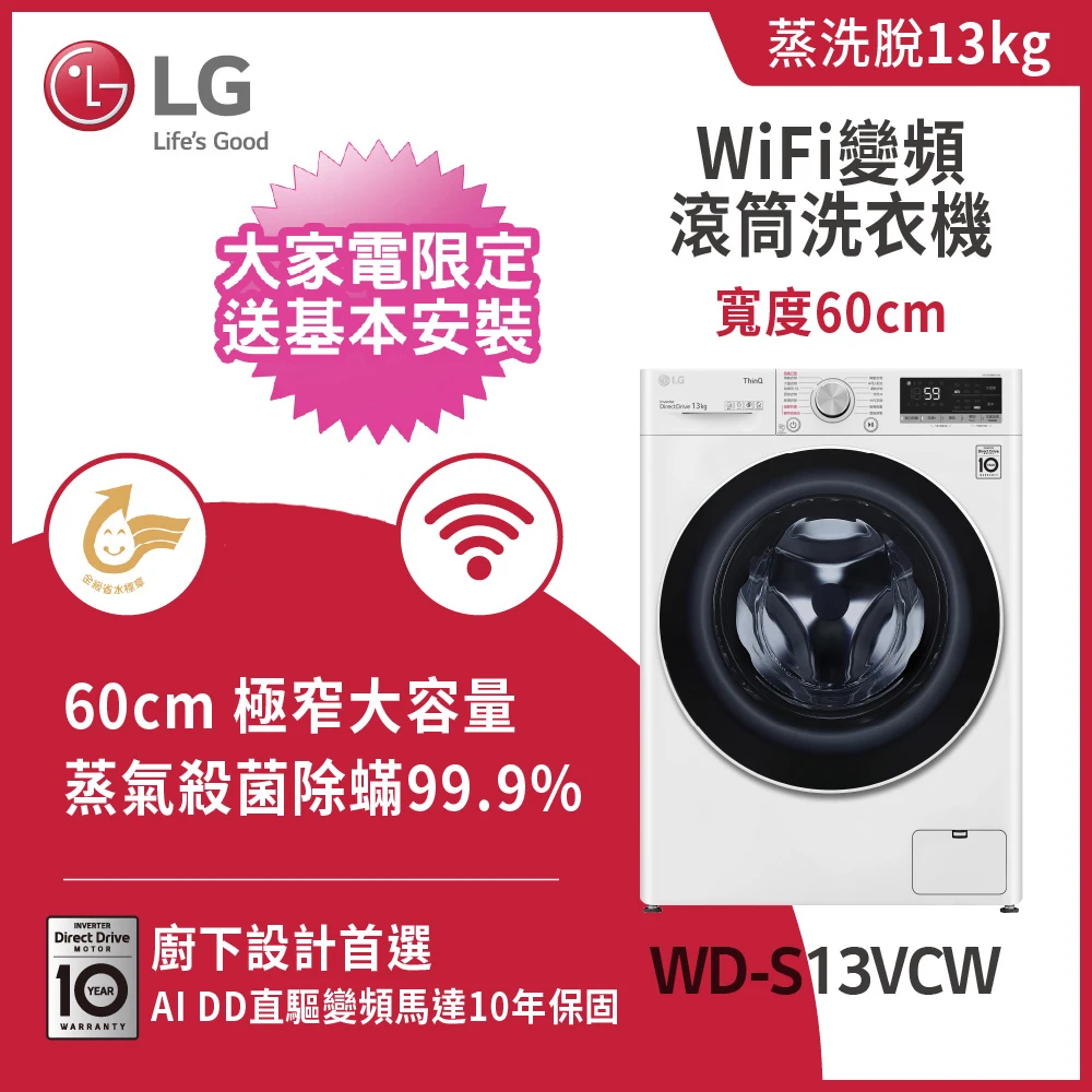 【LG 樂金】13公斤+10公斤〔Wash & Dryer〕免曬衣乾衣機+蒸洗脫變頻滾筒-冰瓷白 (WD-S13VBW+WR-100VW)