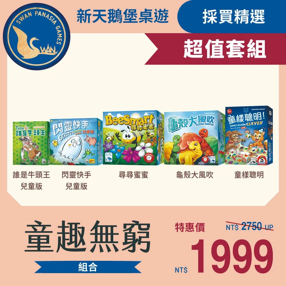【新天鵝堡桌遊】超值套組-童趣無窮組合(龜殼大風吹+閃靈快手兒童版+尋尋蜜蜜+童樣聰明+誰是牛頭王兒童版)【新天鵝堡桌遊】超值套組-童趣無窮組合(龜殼大風吹+閃靈快手兒童版+尋尋蜜蜜+童樣聰明+誰是牛頭王兒童版)【新天鵝堡桌遊】超值套組-童趣無窮組合(龜殼大風吹+閃靈快手兒童版+尋尋蜜蜜+童樣聰明+誰是牛頭王兒童版)