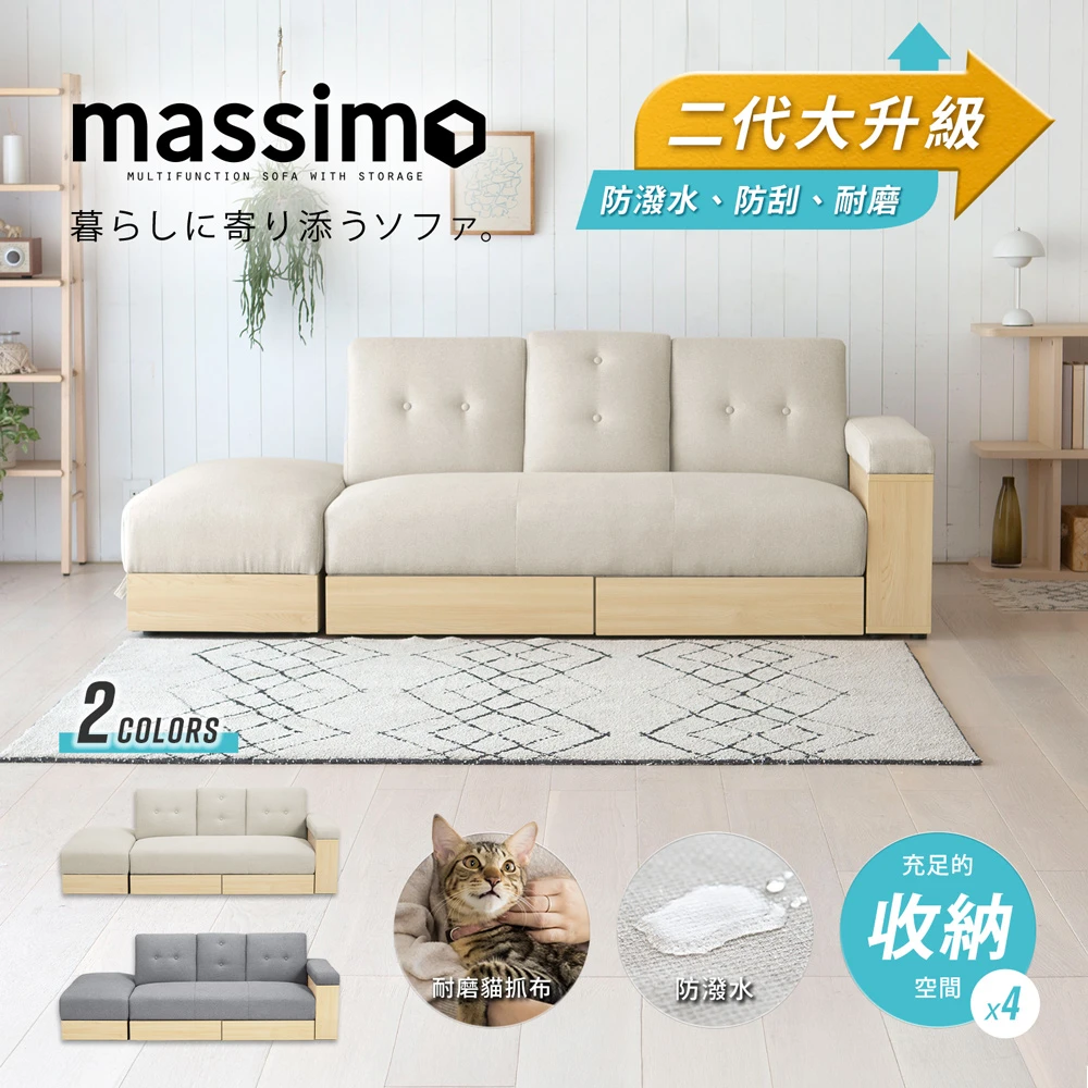 H&D 東稻家居 二代麥西蒙日式多功能收納貓抓布沙發床(新升級 防潑水 耐磨 耐刮)