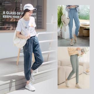 OB 嚴選 率性休閒百搭修身哈倫褲(牛仔褲 通勤 縮口褲 涼感 束口褲 寬褲 闊腿褲 天絲丹寧 大尺碼)
