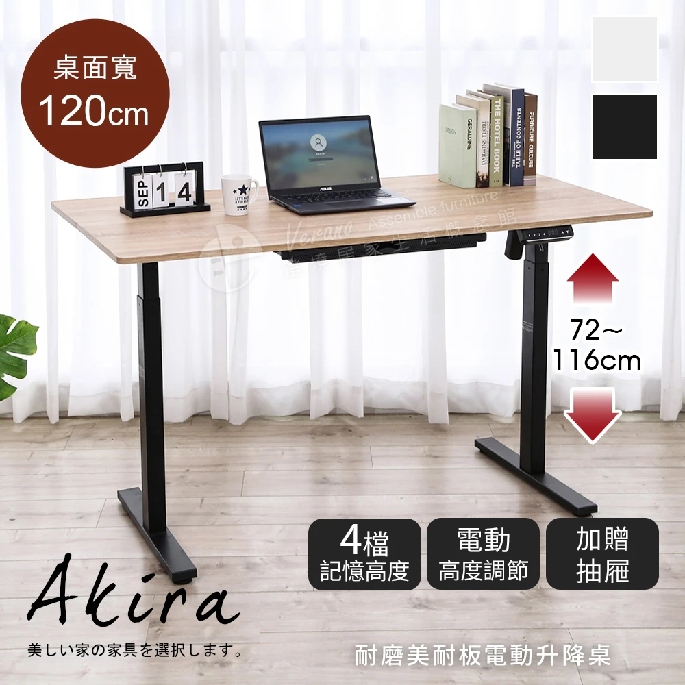 Akira MIT無段式電動升降桌 120x60cm(送抽屜 4段記憶 桌子 書桌 電腦桌 工作桌 辦公桌 站立桌)
