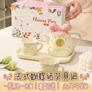 waim life 暖暖生活 法式蝴蝶結陶瓷午茶杯組 一壺兩杯一托盤(下午茶組 花茶組 陶瓷壺 午茶)