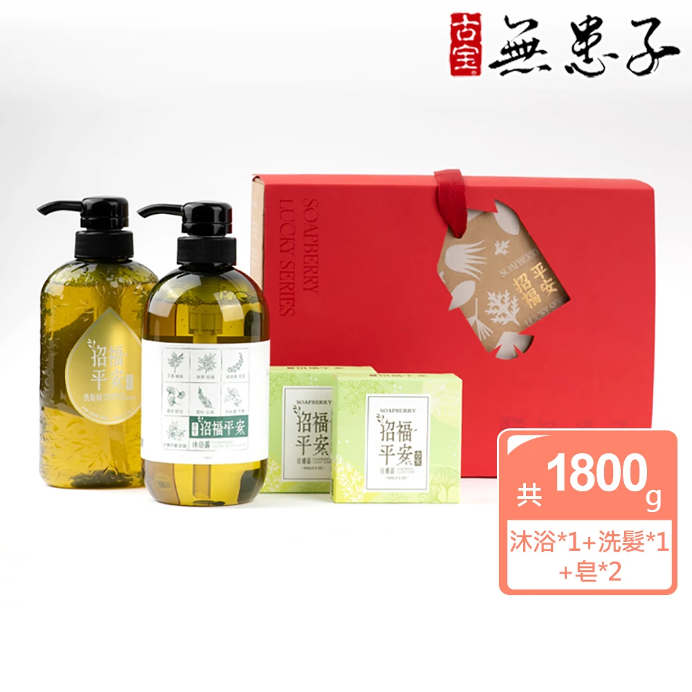 古寶無患子 招福平安禮盒組(洗髮400g*1+沐浴500g*1+平安皂100g*2)