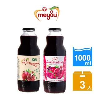 meysu 美愫 100%純天然果汁 1000mlx3入/玻璃瓶裝(紅石榴汁/綜合蔬果汁)