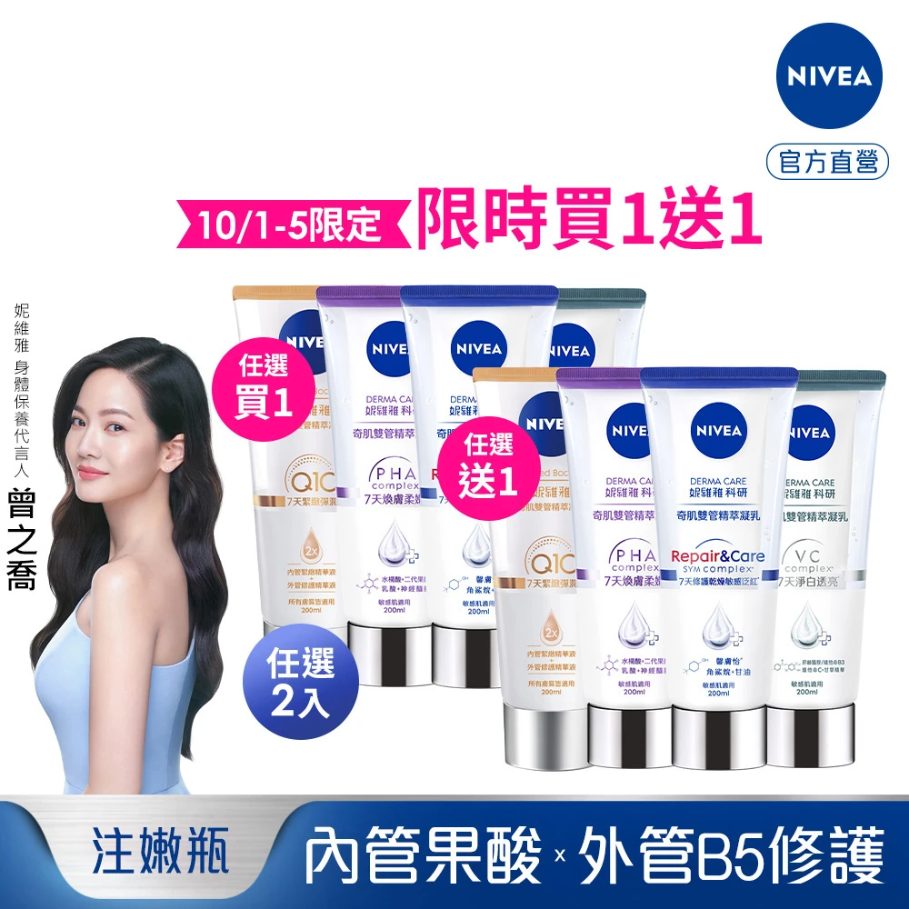 NIVEA 妮維雅 買1送1★煥膚柔嫩奇肌雙管精萃凝乳200ml(共2入)(果酸身體乳/注嫩瓶)
