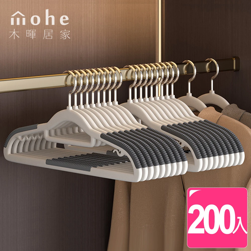 mohe 木暉居家 200入ABS無痕防滑乾濕兩用衣架(曬衣架 衣架 衣櫃架 吊衣架 掛衣架 內衣架)