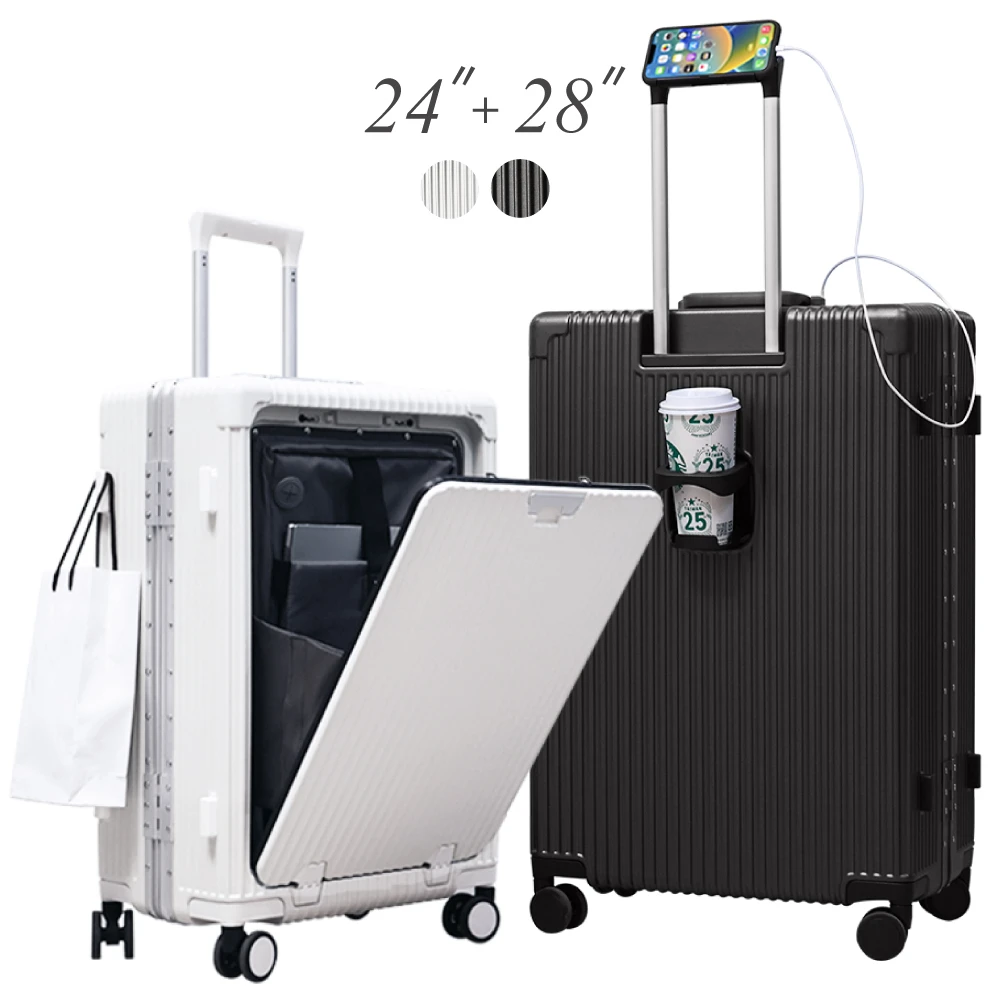 Arlink 24吋+28吋 行李箱前開式 杯架行李箱(行李箱組/行李箱28/行李箱24/旅行箱)