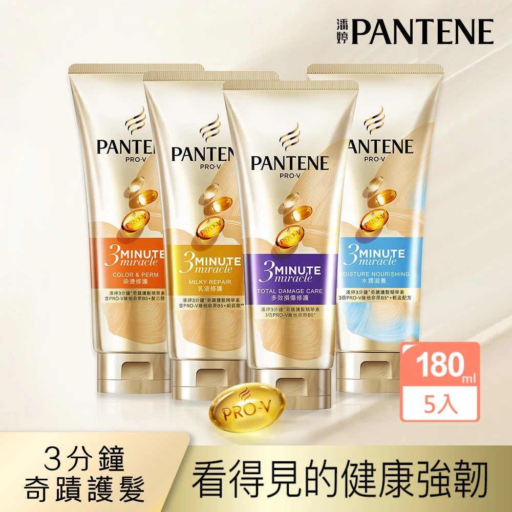 潘婷 3分鐘奇蹟護髮精華髮膜/護髮素180mlx5入(水潤/染燙/乳液/多效 任選)