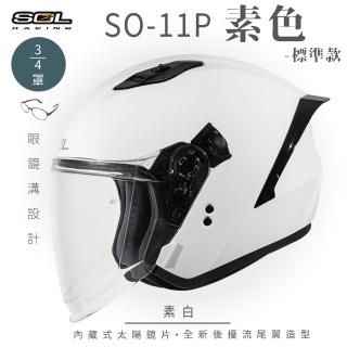 預購 SOL SO-11P 素色 素白 3/4罩式 開放式安全帽 標準款(內襯│半罩│加長型鏡片│內藏墨鏡)