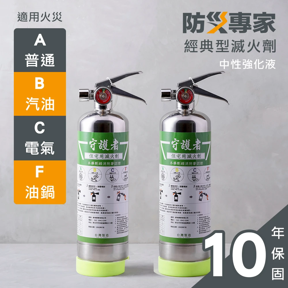 防災專家 經典型守護者中性強化液不鏽鋼滅火劑2入組(台灣製造 國家認證 環保無毒 居家 車用)