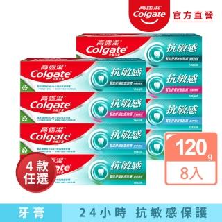 Colgate 高露潔 抗敏感牙膏120gX8入(強護琺瑯質/清涼薄荷/牙齦護理/潔淨亮白)