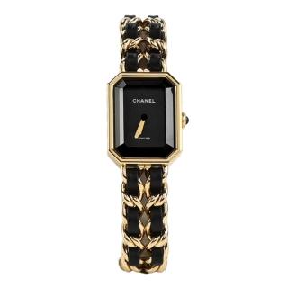 預購 CHANEL 香奈兒 Premiere Rocks皮革交織18K金鍊帶八角形鏡面石英錶(黑X金-M)