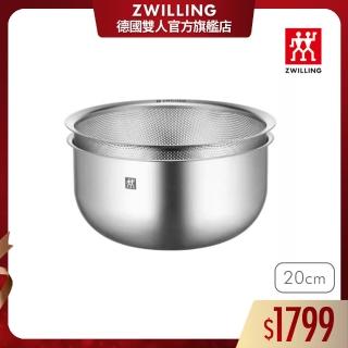 ZWILLING 德國雙人 Prep不鏽鋼多功能瀝水調理盆M號20cm/2件組(德國雙人牌集團官方直營)