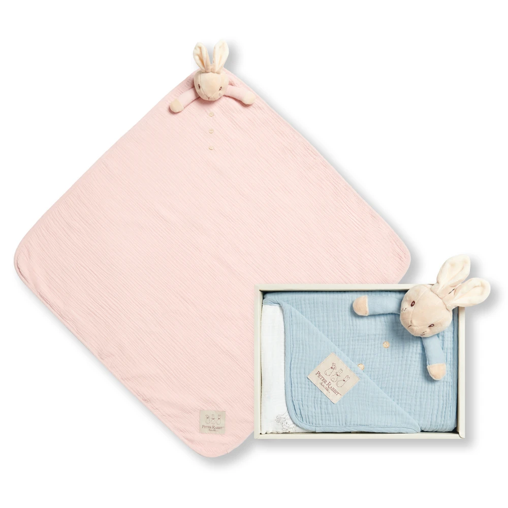 奇哥官方旗艦 比得兔天絲泡泡紗安撫蓋毯禮盒/被毯禮盒 70x70cm(寶寶新生兒禮 滿月禮 彌月禮 嬰兒禮盒)