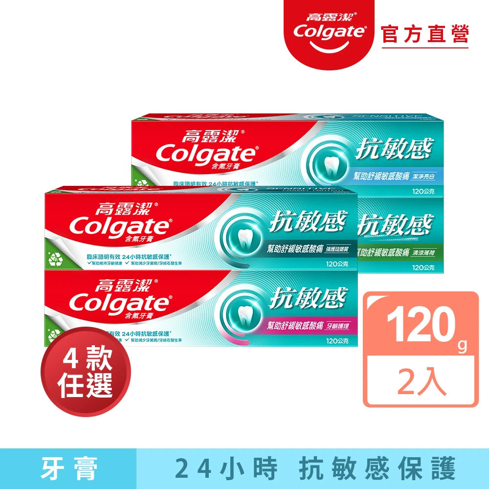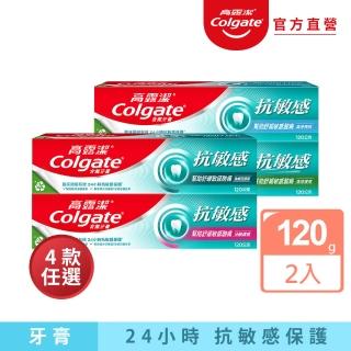 Colgate 高露潔 抗敏感牙膏120gX2入(強護琺瑯質/清涼薄荷/牙齦護理/潔淨亮白)