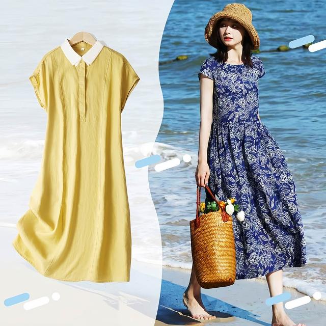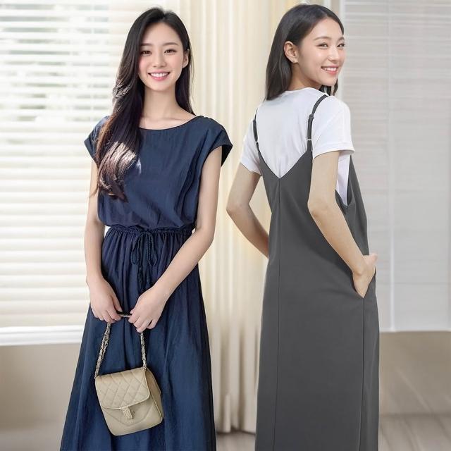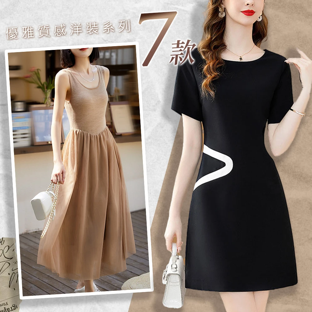 預購 MsMore 小香風時尚氣質簡約圓領連身裙短袖小個子顯瘦別致中長版洋裝#120681(7款任選)