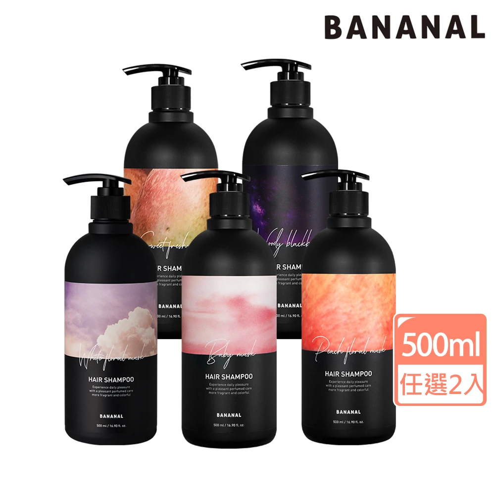 BANANAL 韓國胺基酸香氛洗髮潤髮500mlx2入組(蛋白質調理/溫和弱酸性配方/水潤感質地/5款香味任選)