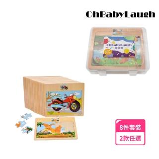 OhBabyLaugh 寶寶十二片拼圖8件套裝禮盒組(木製拼圖/寶寶拼圖)