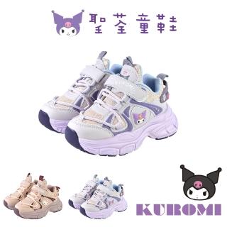 SANRIO 三麗鷗 16.5-20cm童鞋 閃亮金蔥復古魔鬼氈輕量減壓休閒運動老爹鞋(紫.粉色)