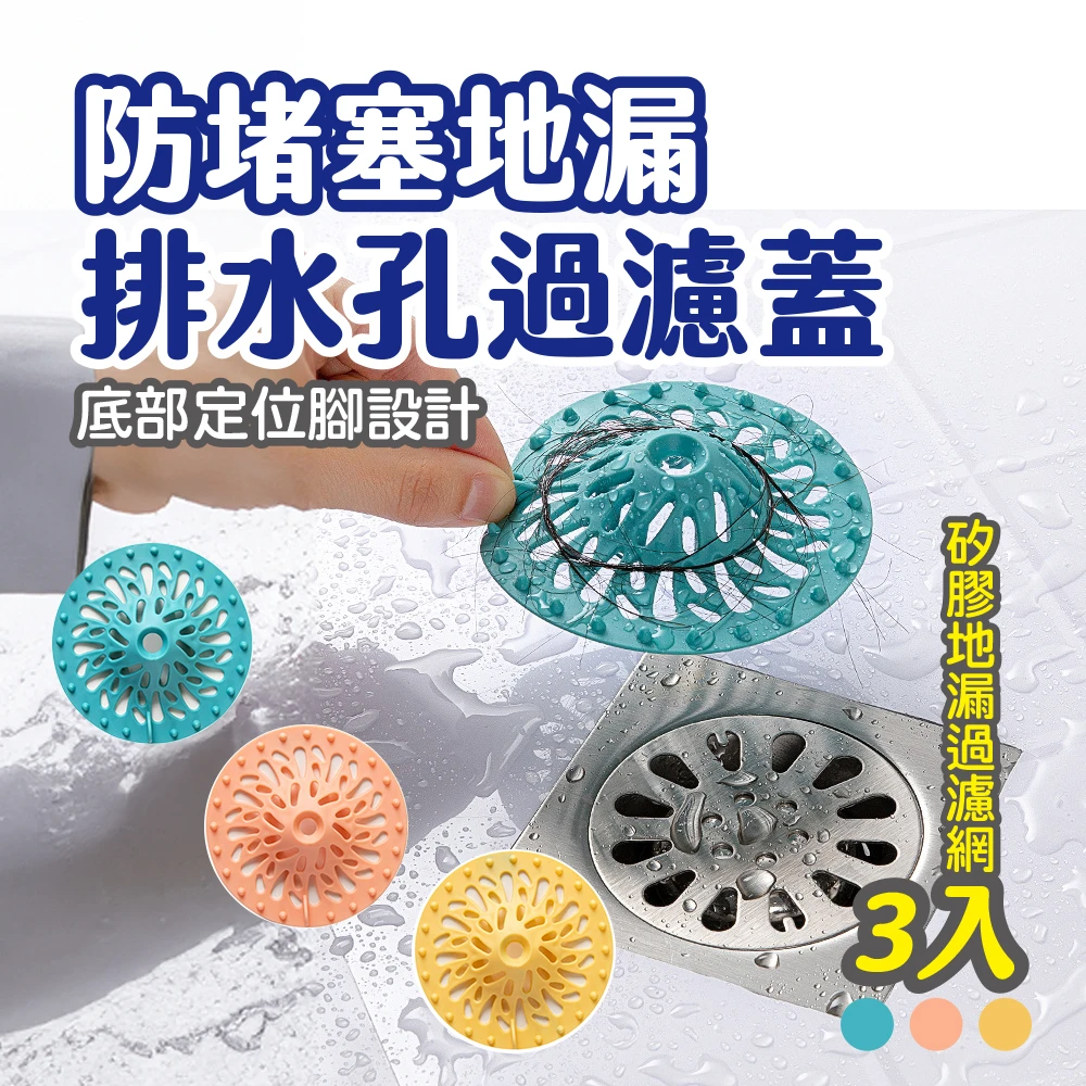 JUXIN 防堵塞地漏排水孔過濾蓋3入(過濾網 過濾塞 水槽過濾 防毛髮 過濾菜渣 瀝水貼 防蟑 防臭 防蟲)