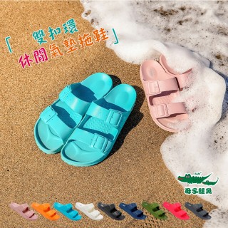母子鱷魚 -官方直營-雙扣環休閒氣墊拖鞋(親子鞋-童鞋多色)