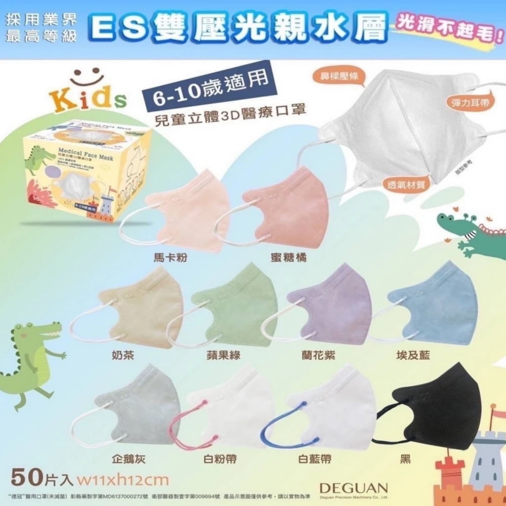 • 【德冠DG】3D立體兒童醫療口罩X1盒(50入/盒 親水層光滑不起毛)