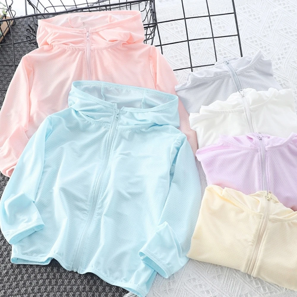 橘魔法 淺色冰絲透氣洞洞防曬外套(親子款 涼感 防曬 防蚊 連帽 薄外套 兒童 男童 女童 大童 童裝)