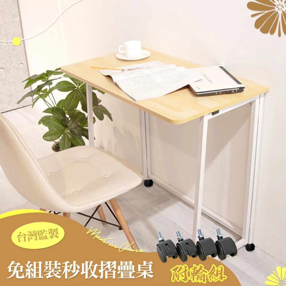 居家cheaper 免組裝秒收摺疊桌附輪組80x45x78cm(露營桌/餐桌/書桌/電腦桌/拜拜桌/摺疊桌/工作桌)