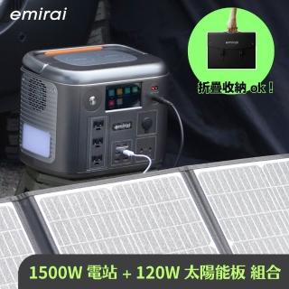 emirai 次世代行動電站1500W+120W太陽能板組-太空灰EMR1500(戶外防災露營儲能電站/安全耐用磷酸鐵鋰)