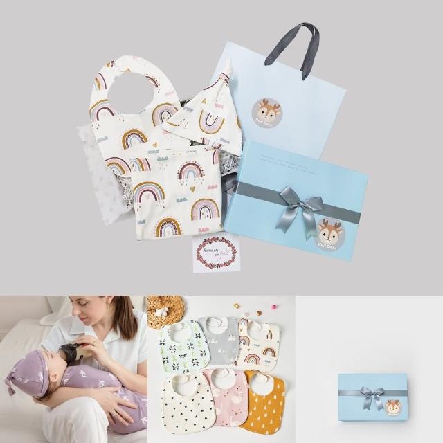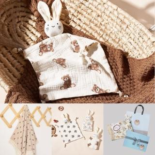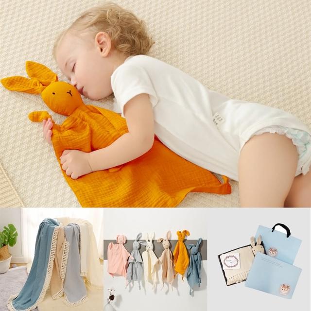 Kori Deer 可莉鹿 彌月禮盒組-印花流蘇嬰兒萬用包巾+安撫巾(彌月禮滿月冷氣毯透氣寶寶被四季毯)