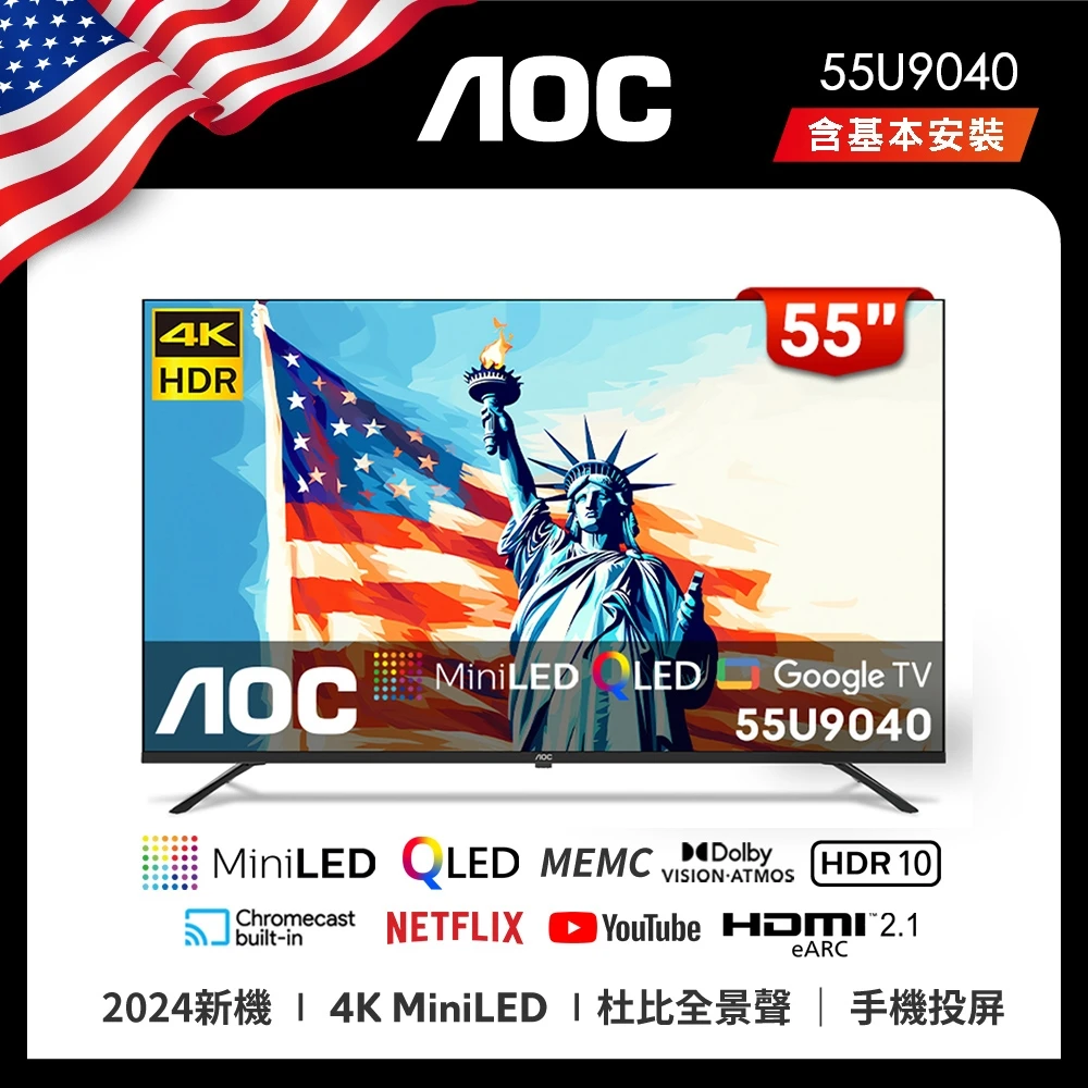【AOC】58H快配★55型 4K QD MiniLED Google TV 量子點智慧顯示器(55U9040)【AOC】58H快配★55型 4K QD MiniLED Google TV 量子點智慧顯示器(55U9040)【AOC】58H快配★55型 4K QD MiniLED Google TV 量子點智慧顯示器(55U9040)【AOC】58H快配★55型 4K QD MiniLED Google TV 量子點智慧顯示器(55U9040)